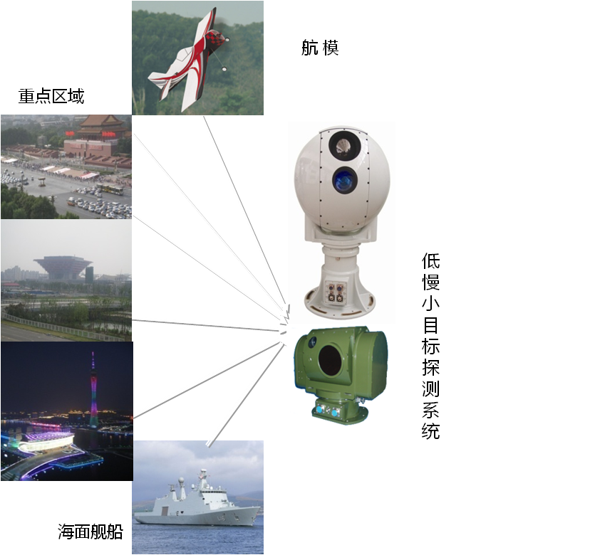 低慢小目标防控系统为大型会展和重要地区提供低空防护,用于重要地区、大型会展低空慢速小目标昼夜防控。系统具备低空多目标检测跟踪、全景图像拼接、全天候连续监视等特点,可对航模、动力伞等低空飞行物进行远距离、全天候搜索报警和监控跟踪。