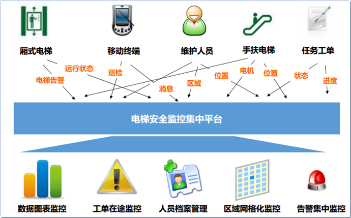 电梯运行联网监测平台是适用于各种型号电梯运行安全实时监测管理的管理软件系统平台,该平台综合了云计算、无线通讯技术、传感器技术、移动互联网技术和物联网技术,采用分布式架构,实时监测电梯的运行状况,通过采集数据的算法处理,实现电梯故障的综合预防、应急处理、事故取证等功能。