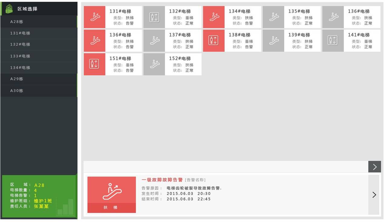 电梯运行联网监测平台,实时检测电梯的运行状况,通过采集数据的算法处理,实现电梯故障的综合预防、应急处理、事故取证等功能。包括支持各种品牌、厂家、型号的轿厢型垂直电梯;支持电梯 平层、门闭合、人体检测、烟感层等传感器;支持语音双向对讲、视频监控。