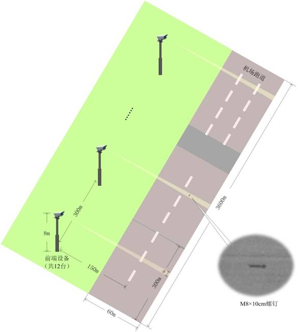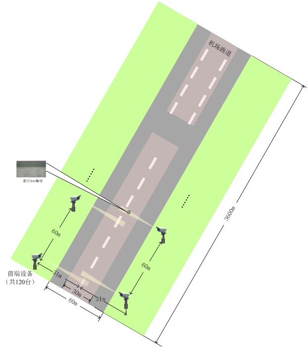 机场跑道异物检测系统可以在不同光照条件下工作,对飞机跑道进行全天24小时扫描,能够监测机场跑道表面包括飞机和发动机连接件(螺帽、螺钉、垫圈、保险丝等)、机械工具、飞行物品(钉子、私人证件、钢笔、铅笔等)等不同材质、不同颜色的异物,同时产生报警信息并提供位置信息以便相关人员进行处置。